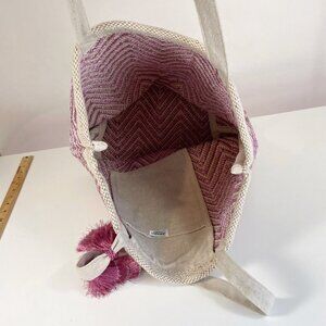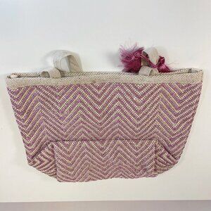 Ashiana Womens Woven Tote Bag Zig Zag Stripe Multicolor L Tassel Deep Pocket