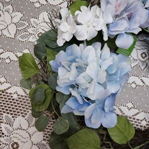 The wreaths really pretty and the artificial flowers include colors of blue and purple, perfect for those who love hydrangeas.