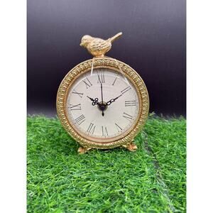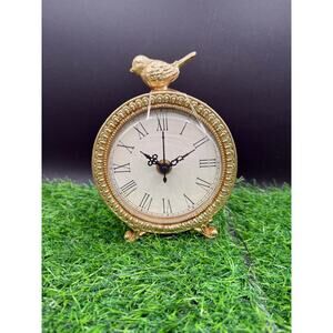 Bring elegance and charm to your space with this 6.5" Gold Bird Tabletop Clock by Ashland. Featuring a delicate bird design perched atop the clock, this decorative piece combines function with style. The gold finish adds a touch of sophistication, making it a beautiful accent for mantels, desks, or shelves. The clock runs on 1 AA battery (not included), offering both convenience and reliability. Perfect for home or office décor, this clock blends practicality with timeless decorative appeal. Great value!!