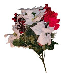 • Artificial floral bush with poinsettias, hydrangeas, and pinecones