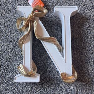Charming letter 'N' with gold ribbon detail. Ideal for adding a personal touch to your space.