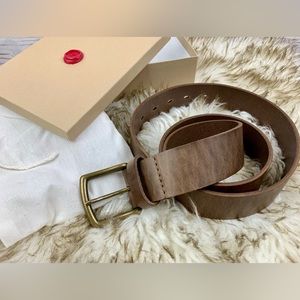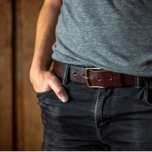 Brand new without tags – crafted from 9 oz. Horween leather for unmatched durability and comfort. Single-layer 1.5” wide leather with double stitching and a resin-coated back for a smooth, comfortable fit. Solid brass buckle and seven teardrop adjustment holes offer a timeless, rugged look. Perfect for casual wear or work. Please order 2” larger than your regular jean size (shown for 40” waist).