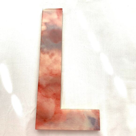 Ashland letter “L” hanging wall decor by Ashland. New. From the Summer "Sunbaked" line. Has a cool water color look to it. Made from MDF and epoxy. Approximately 12" x 5.5". Has a bracket for hanging. Please see photos for measurements.