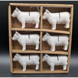 Ashland Marketplace Cow Place Card Photo Holders White Porcelain Set of 6 in Box