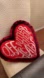 Heart-shaped pillow with bold text. Red and black design. Perfect for adding a statement to any room.