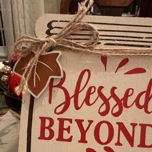 Charming decor by Ashland. Features 'Blessed Beyond Measure' in red script. Cream background with rustic accents. Perfect for adding warmth to any space.