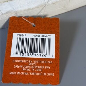 Charming tabletop decoration perfect for adding a festive touch to your home. This decorative piece features the word "Thankful" in green lettering, adorned with a vibrant pumpkin and colorful fall leaves. It sits on a distressed white wooden base, adding a rustic charm to any setting. A delightful accent for the autumn season.