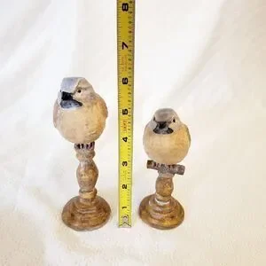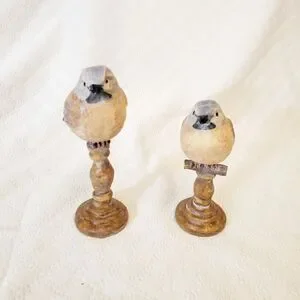 Decorate your home with this tabletop bird accent pieces. Great for side tables, Fire place mantel, or coffee table. Would make a lovely display. They are new with no tags.Please see pictures for best description, condition verification, and approximate dimensions.