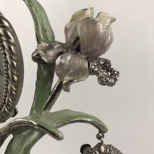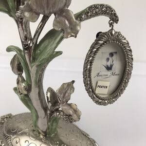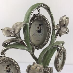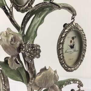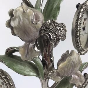 Ashleigh Manor 5 Frame Family Photo Tree Pewter Rhinestone Enamel Floral Flower