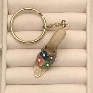 Enameled High Heeled Mule with Floral and Rhinestone Detail. Unique and Whimsical Keychain, Perfect for Shoe Lovers!
