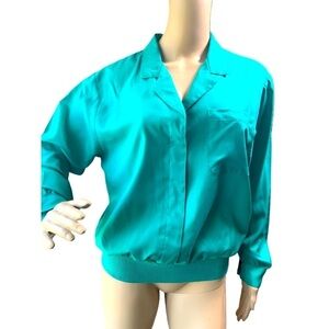 Ashleigh Morgan Green Button-up Long Sleeve Collared Pocket Blouse Size 12