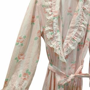 Ashley Ames VTG Waffle Belted Floral Striped Light Robe Lace Trim Pink Sz L