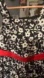 Elegant dress with black and white floral pattern. Features striking red details. Ideal for stylish outings.