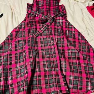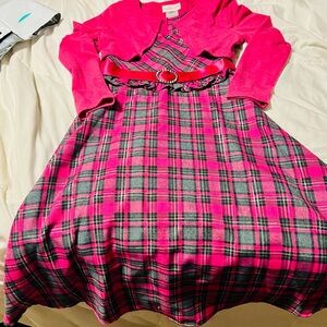 Chic pink plaid dress by Ashley Ann. Comes with a matching cardigan. Stylish and elegant.