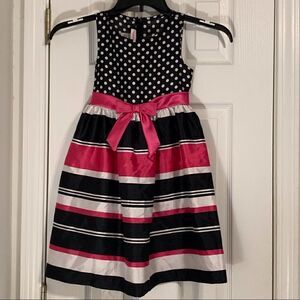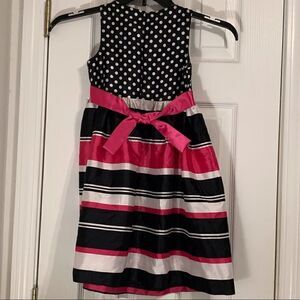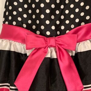 EUC Ashley Ann Dress 🎠 Size 6 🎠 Polyester 🎠 Pink/Black/White 🎠 27.5” Length 🎠 13” Armpit to Armpit 🎠 Zipper Closure 🎠 Tie for back