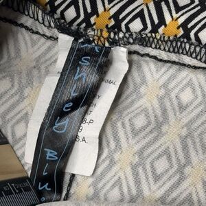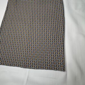 Please preview measurements. This beautiful Ashley Blue skirt is a perfect addition to any wardrobe. Made in the United States, it features a geometric pattern in black and yellow, with a straight and pencil style that falls to the knee length. The skirt is made from a blend of polyester, rayon, and spandex, with an elastic waist and stretchy fabric that makes it comfortable to wear for any occasion.