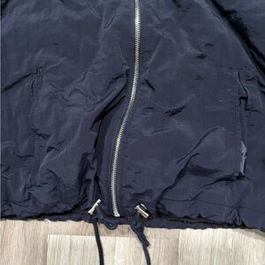 Navy jacket with zip closure. Soft inner lining. Perfect for casual wear. Fits like a Large