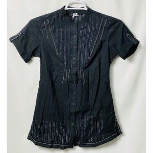 Introducing a stunning blouse by Ashley By 26 International, featuring silver metallic stripes on black 100% cotton fabric. This blouse is perfect for women who appreciate style and comfort. It comes in size small with short sleeves, making it suitable for any casual or formal occasion.