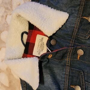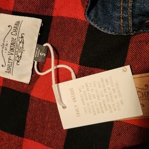 NWT Comfortable Ashley-Vintage Charm Denim Blue Jacket. Lightweight with red & black flannel lining, sherpa lined collar, perfect for winter. 🌲 Size Small.