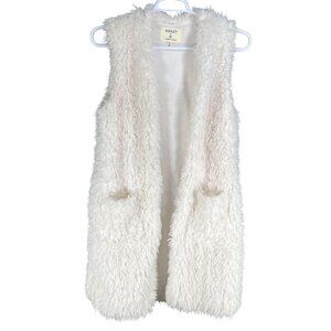 Ashley By 26 International Womens M Fuzzy Faux Fur Long Vest Teddy Open Front Above Knee Length Cardigan Boho Chic Pockets