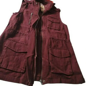 Ashley By 26 International size M Red sleeveless Jacket zip in the front NWT this jacket have never been worn it a super cute one the color is magnifique it have a drawstring at the inside waist.