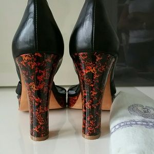 Black with red and orange heels gently used good condition. Also comes with dustbag.