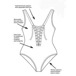 NWT Ashley Graham Swimsuits For All CEO Plunge Lace Up One Piece Bathing Suit Size 8