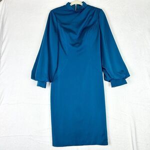 Ashley Lauren Cocktail Dress Size 10 NWT High Neck Balloon Sleeve Peacock 4487