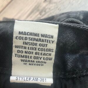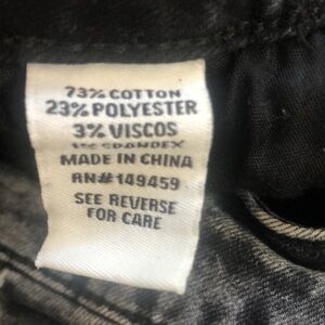 Black acid wash, belt loops, zipper and button closure, 5 pockets, label is off on one side,colors may vary due to lighting, good used condition, Sz: 1