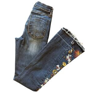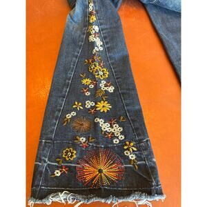 Ashley Mason Boho Floral Embroidered Flare Jeans 00/23 High Rise Tall