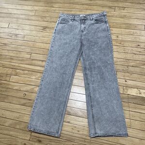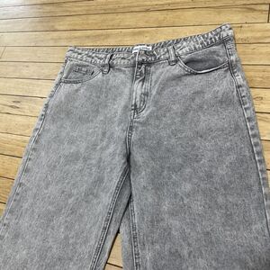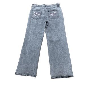 Excellent pre-owned Ashley Mason Coquette Jeans Bow Embroider Wide Denim Women 11 30 Gray Modern Streetwear Pastel Goth; some normal wear from washing pictured; excellent overall