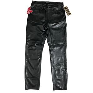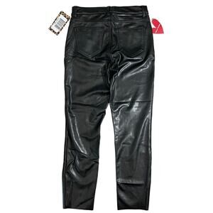New with Tags, Ashley Mason Juniors' Rachel Raw Hem Faux Leather Slim Straight Pants, Black, Size 26.