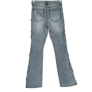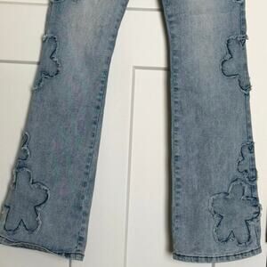 Ashley Mason Premium Distressed Floral Light Blue Jeans Bootcut 3/26