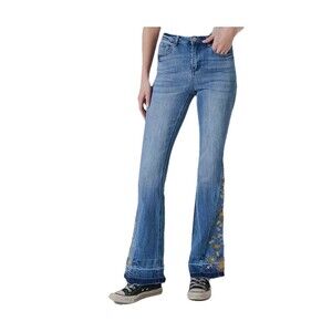 Ashley Mason Premium Jeans Sz 5/27 Flare Daisy Embroidered Raw Hem Y2K Boho