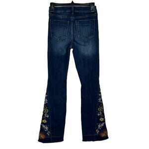 Ashley Mason Premium SZ 0/24 Flare Jeans Floral Embroidered Frayed Boho Festival