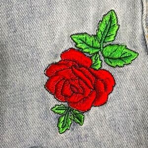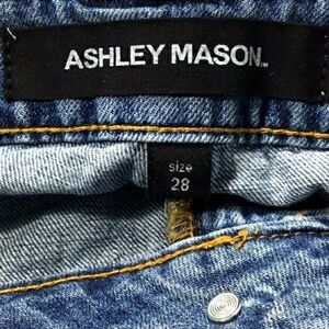 Ashley Mason Roll Cuff Denim Embroidered Shorts Size 28.