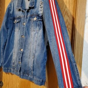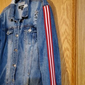excellent used condition Ashley Mason ripped and distressed denim jacket
