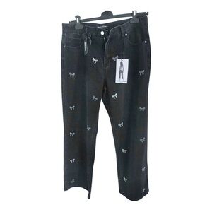 Ashley Mason rhinestones crystal studded bows adorned denim jeans size 7/28 new