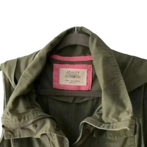 Ashley Outwear medium Olive Green Hooded Cargo Vest Utility zip snap