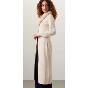 Ashley Park x RTR Cardigan Womens Small Long Faux Fur Off White Midi Sweater