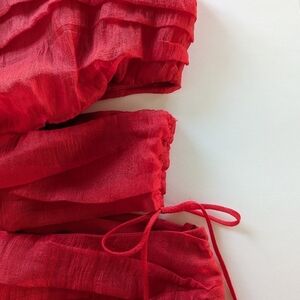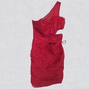 Ashley Park x RTR Red Chiffon Mini Dress, Sheer, Cutouts, Drawstring -sz 6