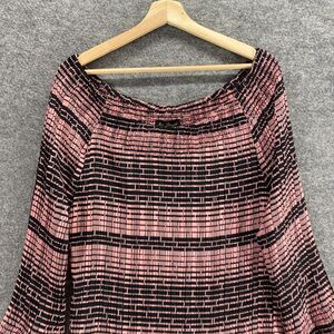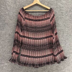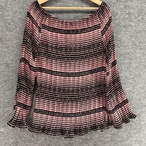 Ashley Steward Top Women 3XL Plus Pink Black Off Shoulder Long Sleeve