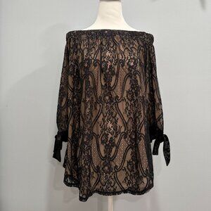 Ashley Stewart Black Lace Off Shoulder Tunic Top Whimsigoth Fairygoth Event NWT
