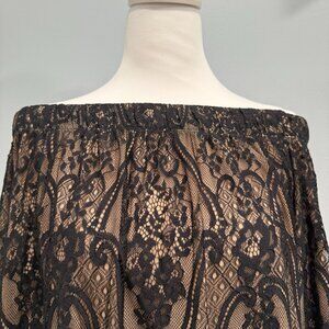 Description: Ashley Stewart Black Lace Off Shoulder Tunic Top Whimsigoth Fairygoth Event NWT