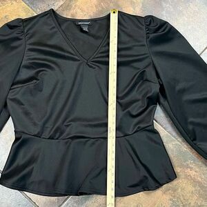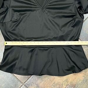 Ashley Stewart Black V-neck Peplum Puff Long Sleeve Blouse 22/24. Measurements in photos. In good, pre-loved (used) condition.
