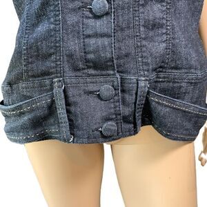 This stylish denim vest by Ashley Stewart has a trendy sleeveless design, button-up front, and chic collar. The blue color and front pockets add functionality and fashion, perfect for casual outings or travel. It's an essential piece for any wardrobe. Size 14W for a comfortable fit.