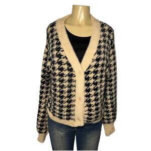 Ashley Stewart Cardigan 10 12 Black & Tan Houndstooth Cropped Mohair Extra Soft