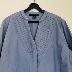 Ashley Stewart Chambray V Neck Button Down Blouse Size 20