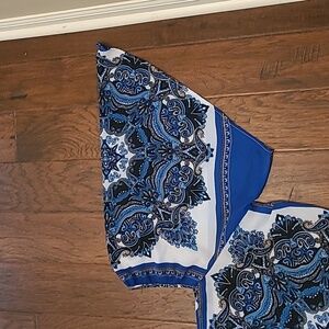 Ashley Stewart women's floral tunic size 18/20. This shirt is thin material but not really sheer. Shirt can be worn on or off the shoulders.