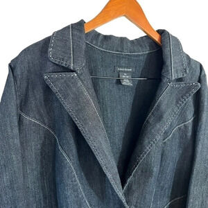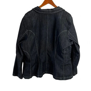 Ashley Stewart Denim Jacket Plus Size 16W Dark Wash Stitching Details One Button